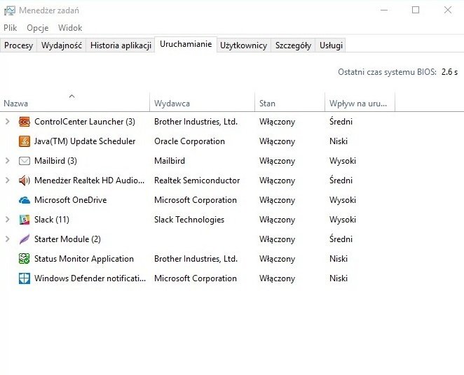 Niektóre programy po instalacji automatycznie dopisują się do listy aplikacji uruchamianych razem z systemem przy włączaniu komputera. O ile takie rozwiązanie sprawdza się w przypadku programów takich jak antywirusy lub komunikatory, to automatyczny start wielu aplikacji jest całkowicie zbędny. Im dłuższa lista takich usług, tym dłuższy czas uruchamiania komputera. Aby zrobić z tym porządek, należy uruchomić Menedżer Zadań (skrót CTRL + SHIFT + ESC), a następnie przejść do zakładki uruchamianie i wyłączyć niepotrzebne usługi.