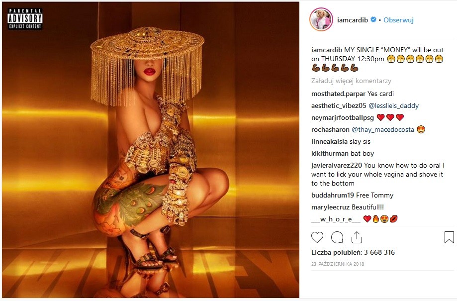 Fani Cardi B mocno wyczekiwali tego utworu, za sprawą oficjalnej okładki, którą raperka opublikowała na swoim profilu w serwisie Instagram: