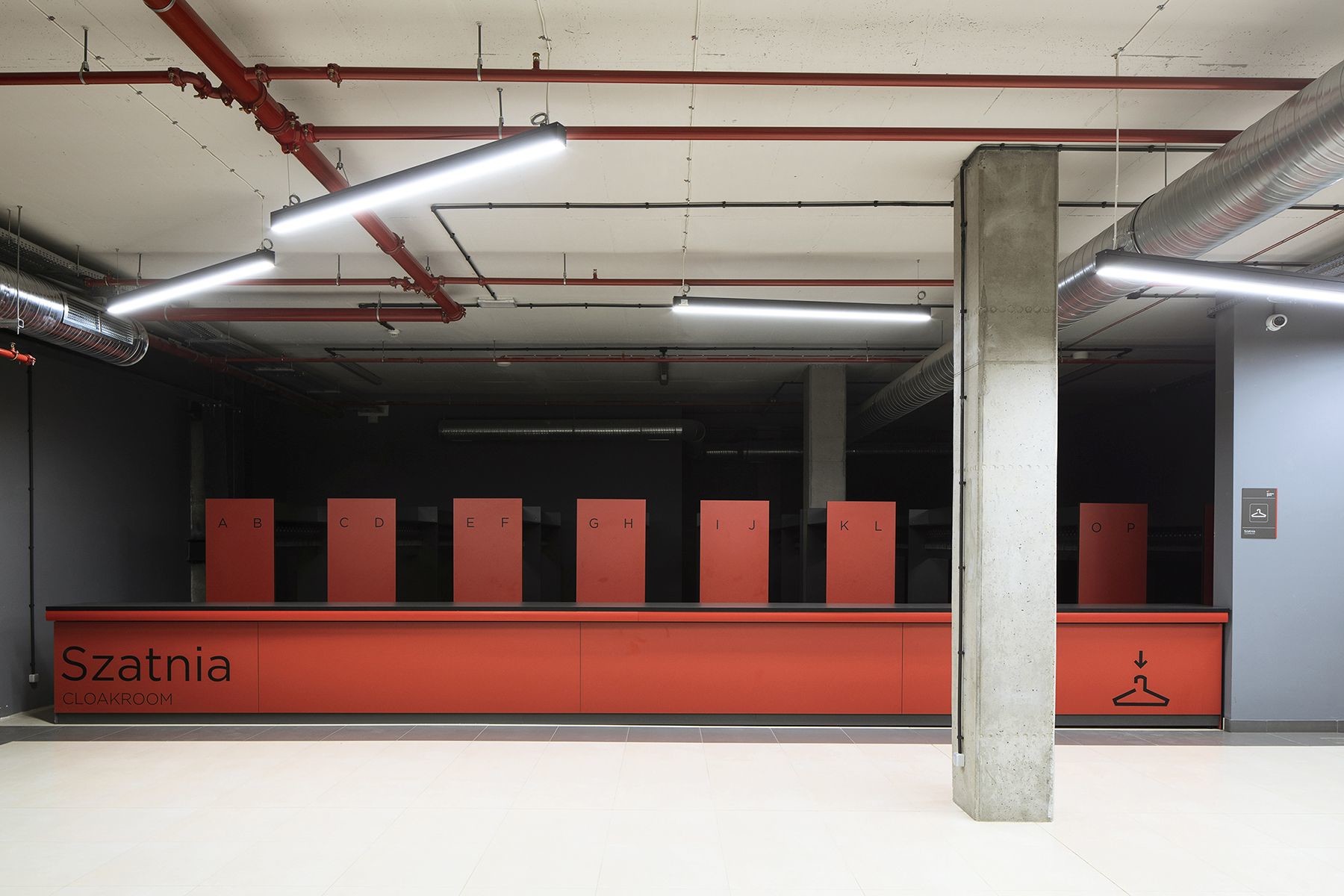 Wnętrze Global Expo idealnie wpisuje się w postindustrialną estetykę – surowość betonu i stali przełamano tu nasyconymi kolorami – stalowe konstrukcje pomalowano na żółto i czerwono, co dodaje przestrzeni charakteru. Całość dopełniają nowoczesne dodatki – ławki o fantazyjnym kształcie, odnowione oświetlenie, czy widoczne rury wentylacyjne, które świetnie komponują się z atmosferą dawnej hali produkcyjnej.