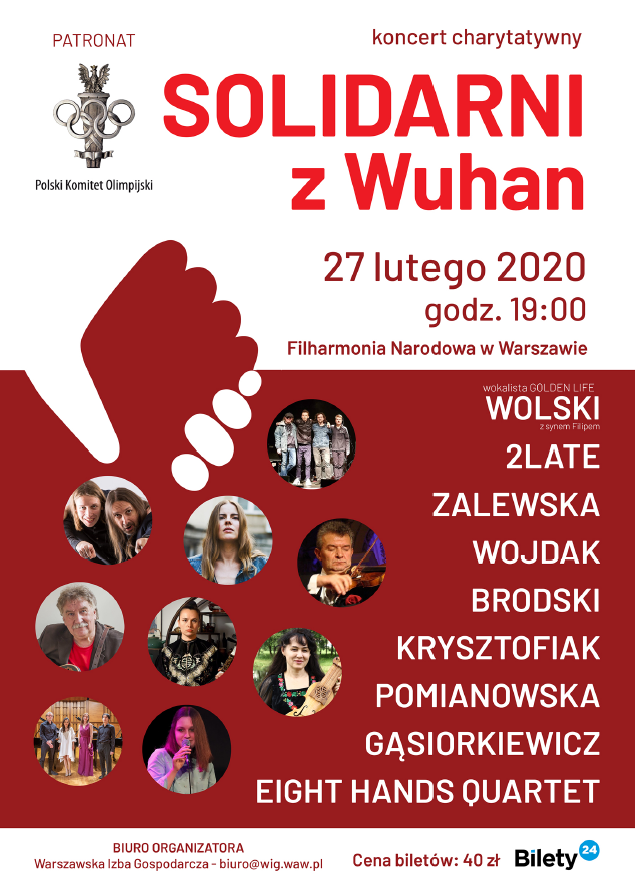Patronat nad wydarzeniem – koncertem i akcją pomocy „Solidarni z Wuhan” – objął Polski Komitet Olimpijski.