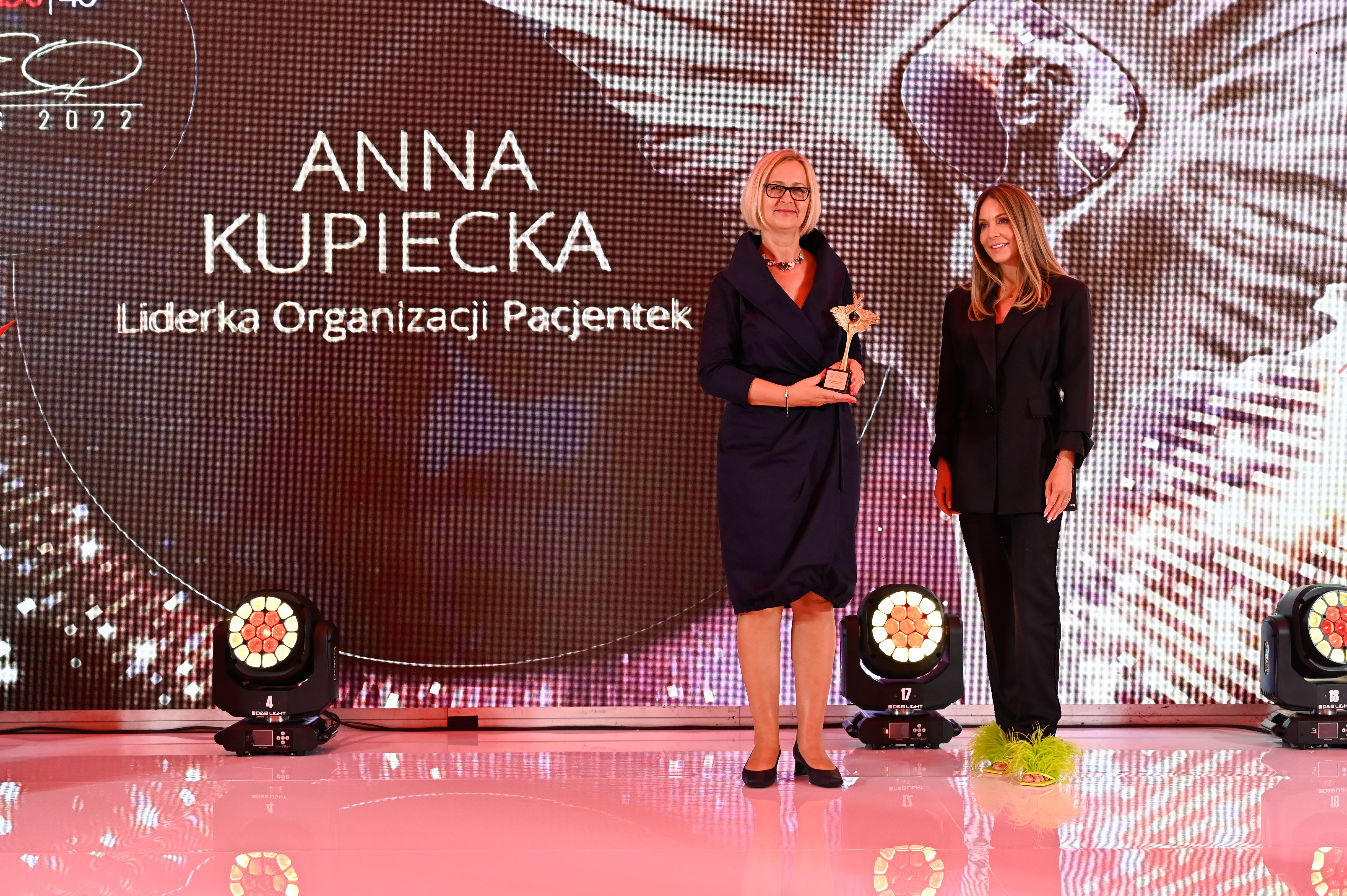Liderka Organizacji Pacjentek – Anna Kupiecka prezes Fundacji OnkoCafe – Razem Lepiej – Dzięki jej zaangażowaniu powstało miejsce, w którym kobiety z rakiem piersi spotykają się i wymieniają doświadczeniami, a zrozumienie i empatia jest na pierwszym miejscu. To między innymi dzięki jej zaangażowaniu mówimy dzisiaj o zmianie nastawienia Polek do wykonywania badań profilaktycznych piersi. Od lat w ramach kampanii BreastFit. Kobiecy Biust. Męska sprawa działa na rzecz wczesnego wykrywania nowotworów u kobiet.