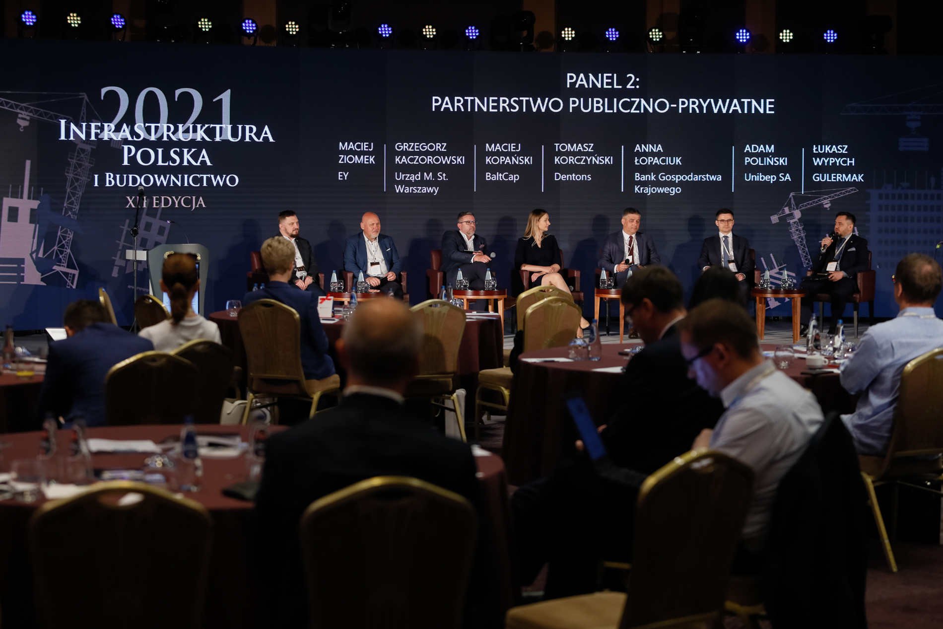Po krótkiej przerwie rozpoczął się drugi panel pt. „Partnerstwo Publiczno-Prywatne”. Moderatorem dyskusji był Maciej Ziomek, Associate Partner w Dziale Doradztwa Transakcyjnego, EY, a panelistami byli: Grzegorz Kaczorowski, Dyrektor Biura Rozwoju Gospodarczego, Urząd M. St. Warszawy, Maciej Kopański, Dyrektor Inwestycyjny, BaltCap, Tomasz Korczyński, Adwokat i Managing Counsel, kieruje praktyką PPP/Infrastruktury, Dentons, Anna Łopaciuk, Menedżer ds. Sektora Paliwowego i Infrastruktury w Departamencie Analiz i Wsparcia Sektorowego, Bank Gospodarstwa Krajowego, Adam Poliński, Członek Zarządu, Dyrektor Infrastruktury, Unibep SA oraz Łukasz Wypych, Menedżer ds. Inwestycji, GULERMAK Agir Sanayi Insaat ve Taahhut A.S. Oddział w Polsce. Pierwszym tematem podjętym przez ekspertów była rola i efektywność sektora prywatnego w procesie przygotowania realizacji. Wskazano, że należy wprowadzić mechanizmy równoważące, a za główny wskaźnik motywacji do zawierania umów uznano efektywność. Eksperci zauważyli również, że nadchodzące środki wsparcia sprawią, że cała Europa stanie się placem budowy. Ochroną przed zamętem na rynku wykonawczym pozostaje spojrzenie na umowę w duchu partnerstwa. Do ostatnich rozważań mówców należały możliwości i rozwiązania, które mogłyby wesprzeć polski rynek PPP.